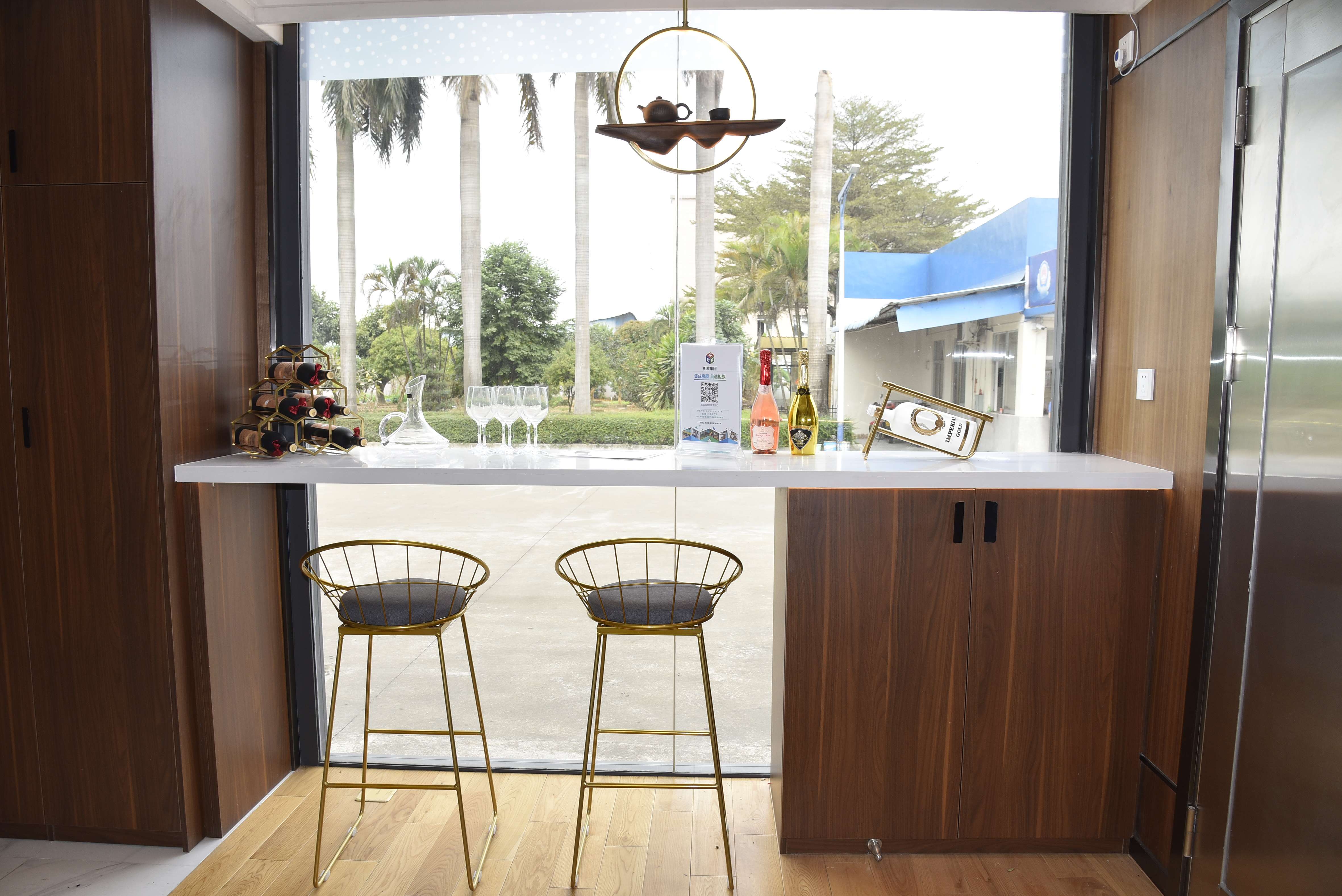 在功能布局上,一層起居、二層休閑。一層進(jìn)門右邊為吧臺(tái)、左邊沙發(fā)茶幾,上部天花為暗藏小玄機(jī)的升降床。衛(wèi)生間、洗漱臺(tái)與臥室相連,飄窗小陽(yáng)臺(tái),處處體現(xiàn)的都是居住的方便與舒適。大面積落地窗,就是為風(fēng)景好的沙灘、海邊等度假地設(shè)計(jì)的,室內(nèi)生活溫馨小資、戶外美景賞心悅目,陶醉其中、無限樂趣。