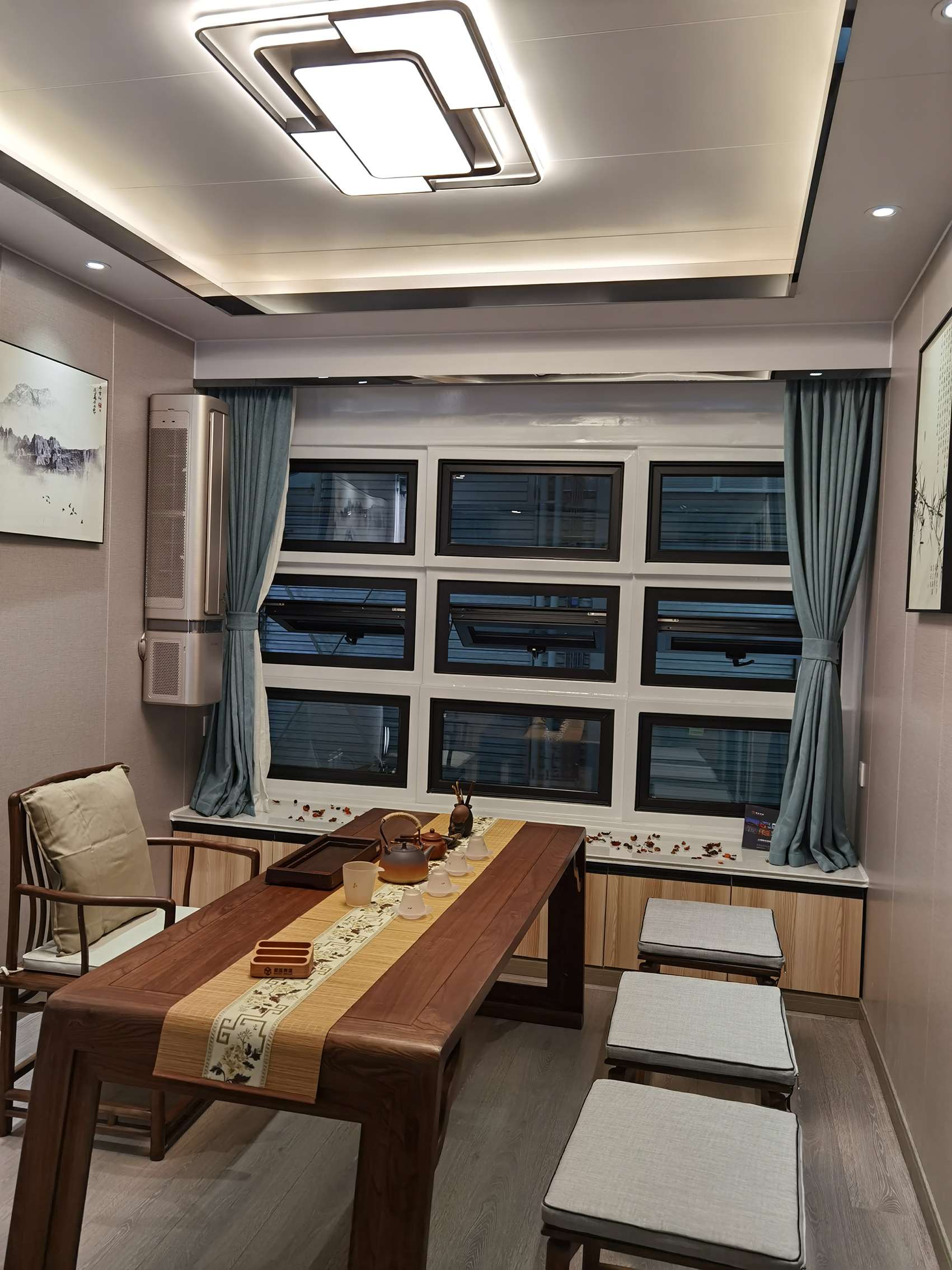 室外樓梯通往二樓,相對(duì)獨(dú)立,與主人的起居生活很好地區(qū)分開來,陽(yáng)臺(tái)和茶室都是喝茶聊天的好地方,裝修雅致、燈光柔和,涼爽的天氣里,在高處看更遠(yuǎn)處風(fēng)景,更加心曠神怡。你是不是也對(duì)這們的房子心動(dòng)了呢?