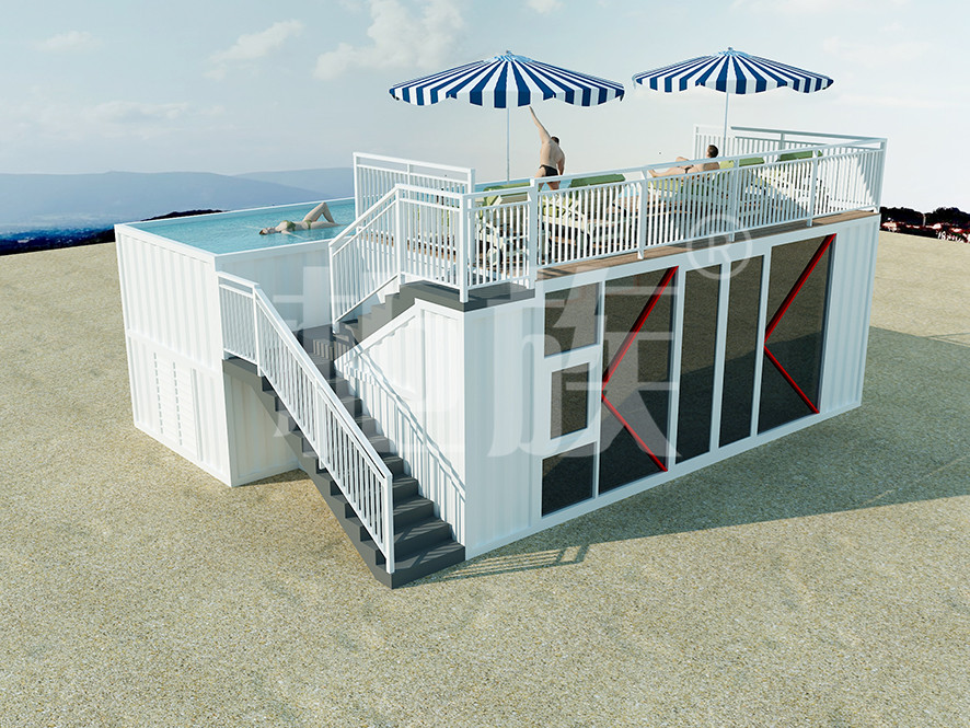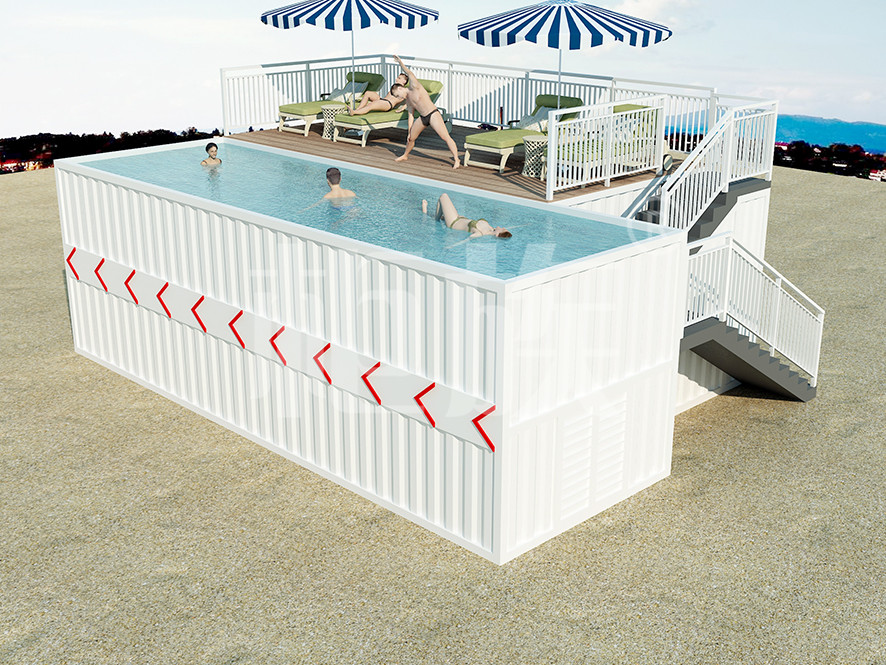 集裝箱泳池可以完全在工廠預制完成,占地小、造價低,適合庭院、海邊的度假地、以及其他公共游樂場所使用。